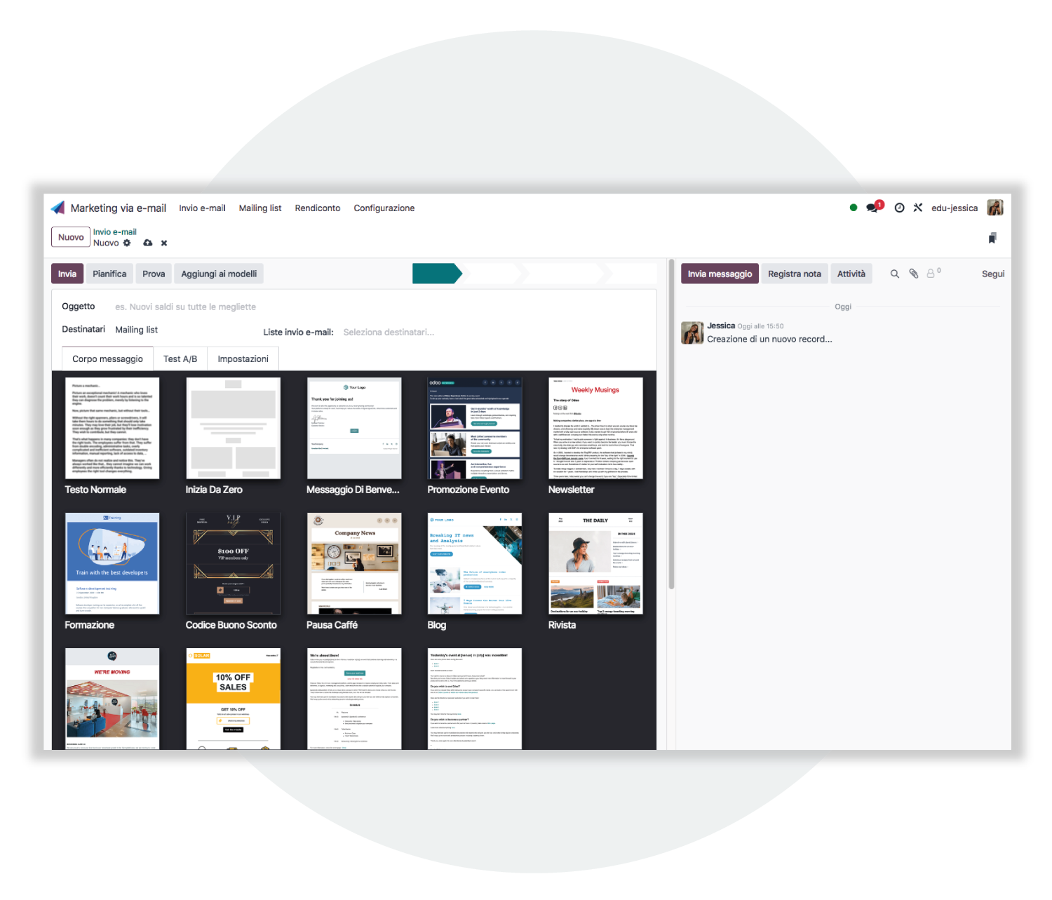 Odoo E-mail Marketing crei campagne professionali in pochi secondi e le invii