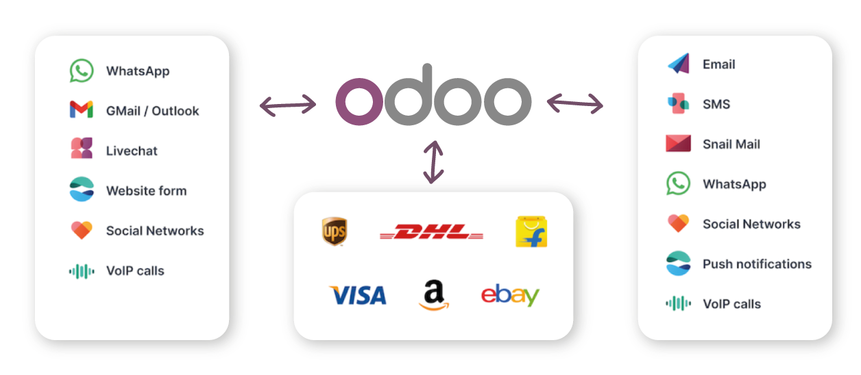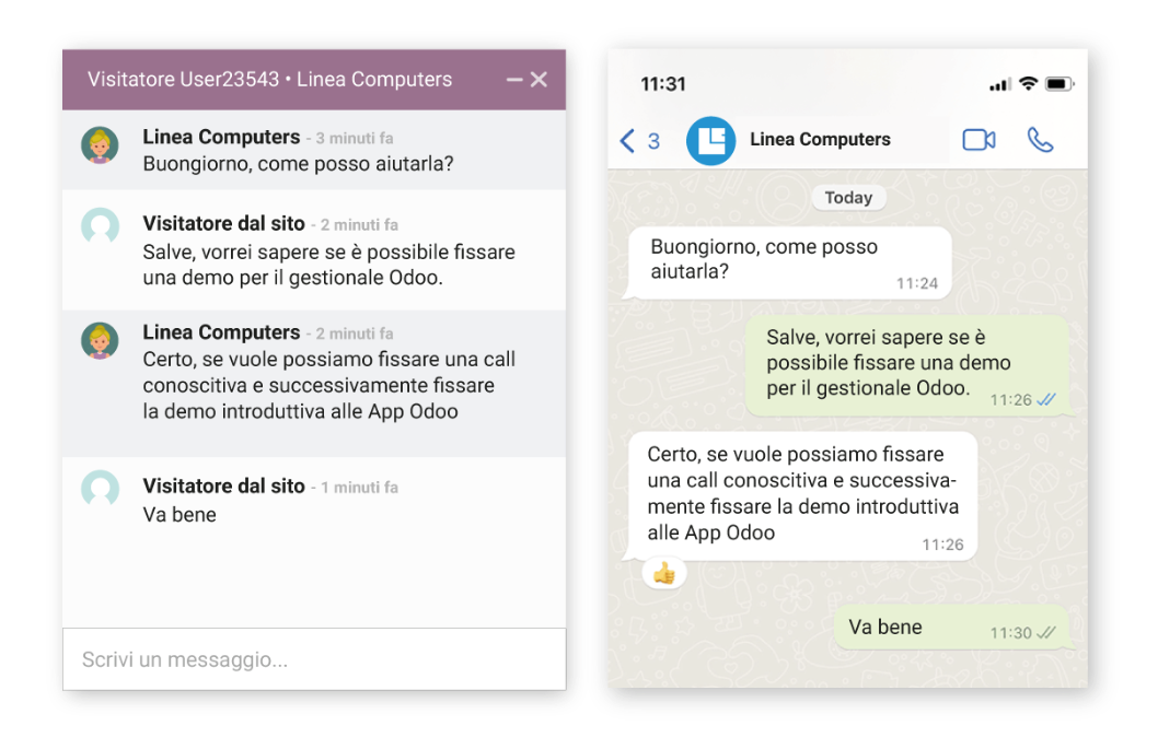 Un'unica piattaforma. Tutte le tue conversazioni. Con Odoo Comunicazioni puoi gestire ogni messaggio da un solo posto: scrivi, invia e lascia che il sistema instradi tutto nel canale corretto. Facile, automatico, efficiente.